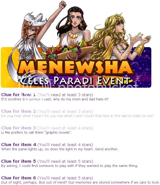 For those of us working on the task of enticing the Goddesses to get their stars over here, it would help a lot to have a reference. I've found a few things in the archived faq threads for Celes past, but not much. I can't seem to find their Hangout threads, so maybe I'm just being blind..? I'd like to get some stock pics, and maybe a description of each Goddess. Like, I'm pretty sure there's a connection between each goddess and the sun/star/moon themes or day/night/midnight if I can stretch it that far. XD But other than a sun on Song's forehead, there isn't much else to go on there. :( Anyway, any help would be appreciated. I sadly only saved images of the Star Eater for a project I had planned. |