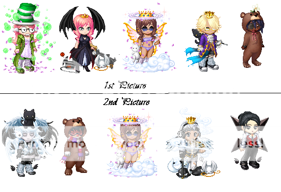 Username:Nomz_Rockz I Want: 2x Group pictures of 5 different gaian avatars in each picture Reference: Other: Can you draw them in the order that they are in for the references, can the centre one have a badge saying 15, and can there be balloons in the background? lolz strange request I know xD Thank you |
