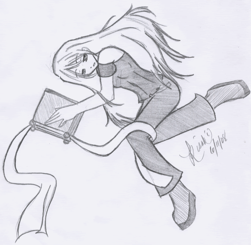 Color options: B&W animals: None props: A book in hand with a slushie? :3 character: [OC/Fanart](if it's a fan art, please specify what show/game/manga it's from.) character name: Katrina Mitsukai references: http://fc05.deviantart.net/fs43/i/20...arekansezu.jpg http://i11.photobucket.com/albums/a1...rt/kat-fb2.gif extra information: She's super accident prone, so should have at least one or two bandages. ^ ^' How's that? :3; |