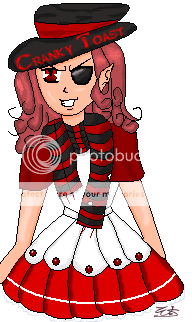 I'm willing to listen to Sadi's Whim :3 Username: Cranky Toast Reference: My avatar. It's not changing anytime soon, so I don't think I need to post a picture. xD Type: Non-chibi (waist up and colored) Expression: Angry Your Offer?: 100g Anything Else?: Could you put 'Cranky Toast' somewhere on the art? Thanks! <33 |