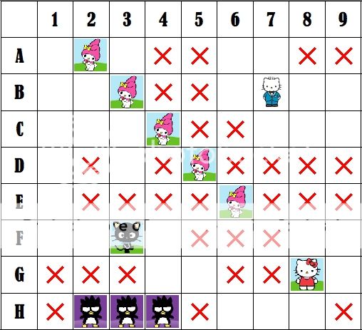 B3=HIT! My Melody! D6=Miss, B4=Miss, D6=You guessed this a few guesses ago if i'm not mistaken, Please make an extra guess!
