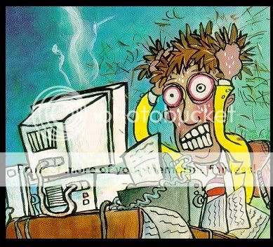 Mon=8hrs, Tues=12hrs(6am-6pm), Wed(today)=10hrs, Thurs=10hrs, Fri=9hrs(6am-3pm), then ive got my mates wedding rehearsal on at 6pm, then when ever that finishes, im driving an hour each way to the dames place straight after to spend time with her and meet one of her friends who is comming up from quite some distance away. Then im back here saturday bright and early to get my hair done again for the wedding this weekend. On top of that im going to her place tonight too! Ive got things to do in between that though too, little errands. Like this morning, taking a load of mattresses to my folks place for my sisters 21st on the weekend, which is happening on sunday! CRAP! i gotta get her a present too! >_<; something else i just thought of! At the moment, i imagine i feel, and probably look, something like this guy: http://i6.photobucket.com/albums/y24...frustrated.jpg |