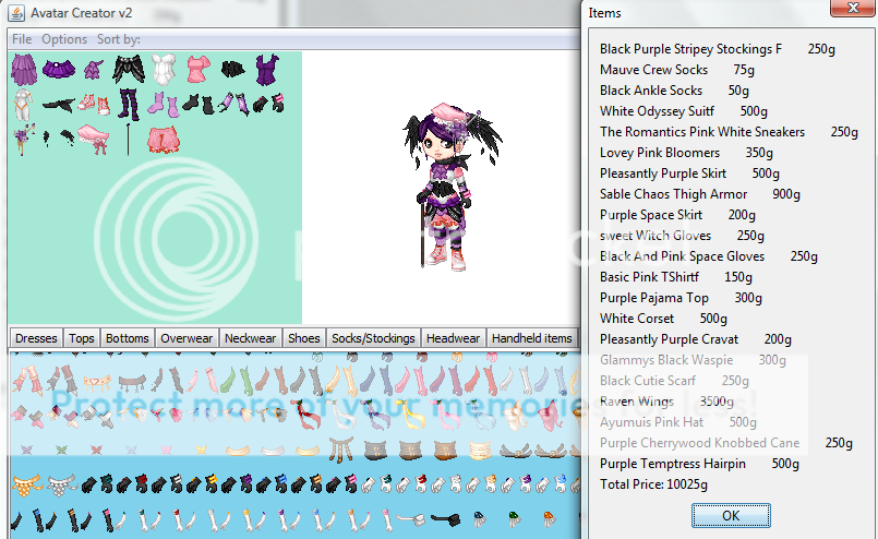 ( items you want included, items you already have so I can extend the price range by a bit, items you don't like, hair style/color, skin color, themes, preferences, etc.