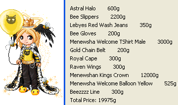 Some things it must include Male hair 6-either black or gold/yellow Male Welcome Shirt Kings crown Bee slippers |