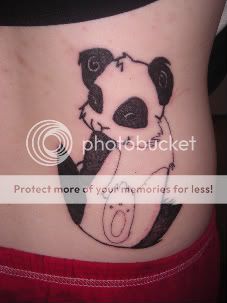 I'm not a fan of piercings, which is odd because I love tattoos. I'm weird. I have a tattoo on my right lower back, on the side (not a freakin' tramp stamp). It's of a panda bear. Not finished yet though, I'll be getting it finished next month. It HURT SO BAD. But I'm a big baby. XD I have had my ears pierced twice, pretty sure they're closed again. I never wear earrings.