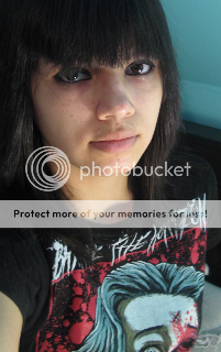 This would be me. My bangs are actually a lot straighter than that now- They were choppy because I decided to be an idiot and try to self cut my bangs when they got too long. |