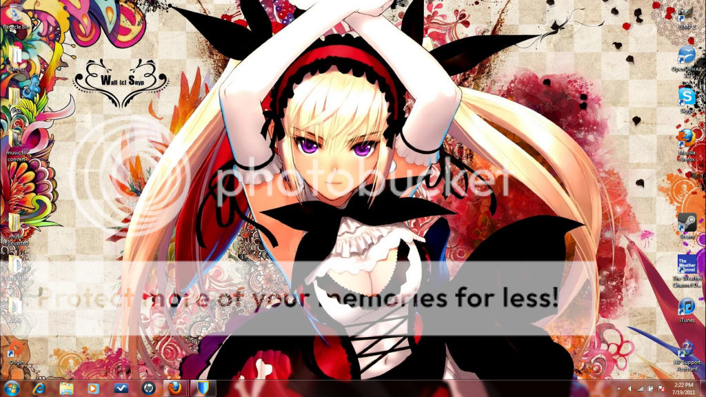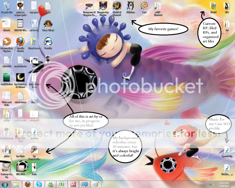 It seems like that everyone who has posted a screen shot so far is using one flavour of Windows or another. I found it funny to spy on what Ikuto Akihiko was listening to at the moment. zeapear plays, and potentially makes alot of games. The company that I worked for, for numerous years, used Game Maker 5/6 depending on the class for the computer game design classes for ages 10 and up. Isn't Mabongi another Nexon game? I used to play Maplestory until one of the recent patches during the anniversary of all things made it completely incompatible with Windows 7. It was unofficially incompatible before but I still ran it anyway, but now even if I try to run it in XP Pro compatibiity mode it craps out on me. Boo. -shaky fist-. Hmm. -evil grin- Ever heard of Dwarf Fortress? :twisted: I think Sir D . L O Van Lobsters's desktop is clean and peaceful... more like a screen saver, if it wasn't for the task bar. I could fall asleep staring at that. Estrella wins the colourful award. Are you sure you don't want us peeking at your resume? ;) voenne's wallpaper makes me think I'm in someone's guest bathroom x_X Elluh- That fan art is adorable. I can see how that can make you smile every time you see your desktop! |