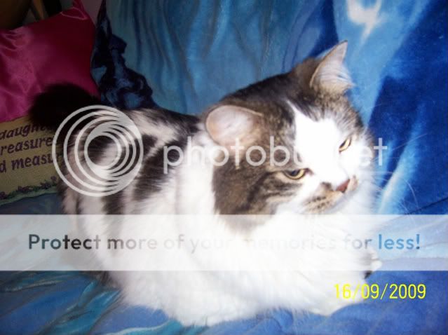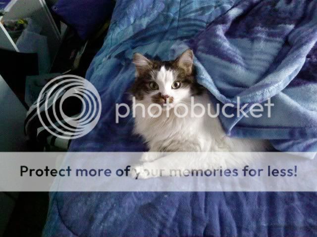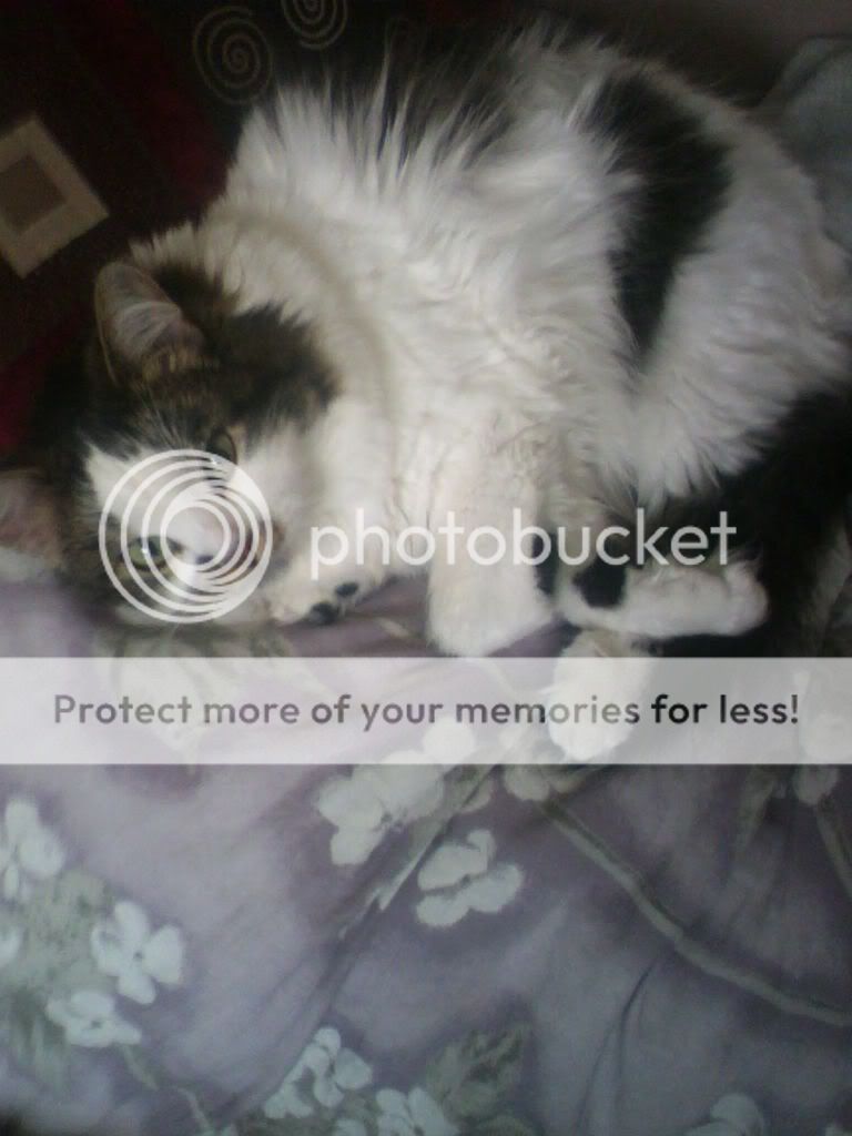 She's adopted from a next door neighbour we had living somewhere else a while back and he said if he didn't find a home for her they would drown her. I couldn't let them do it and they should have gotten their female cat fixed before letting her roam loose. When I told my mom this I got to go grab the cat carry her home and mom mauled her xD |