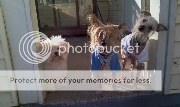 My pups. Ferra, the hairy one is mine and is like cuddling a teddy bear. XD The middle one is my sister's dog. He comes over when she's working with his brother Taco. Tiki is the end one. He doesn't cuddle very well. XD