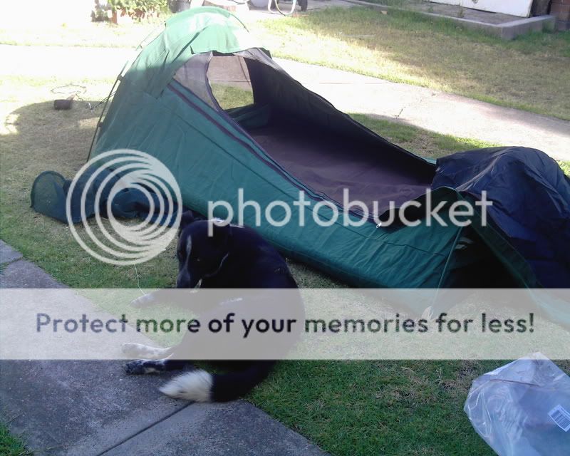 @ Godlier: Its not rape if we want it... or if you yell 'SURPRISE!' before hand! ^_^ I also feel obliged to balance out the pussy pics with some K9 lovin! Here is my folks dog (Border collie x blue cattle dog) and also my swag. Its like a tent, but made out of a much MUCH more durable canvas, has a small mattress in the bottom and you usally stick your bedding in on top and it just rolls up. All you do is roll it out, put the poles in one end and tie the rope to something to hold the end up a bit and youre set. takes all of 10mins to put up or put away! http://i6.photobucket.com/albums/y24...g/SMDC0036.jpg |
