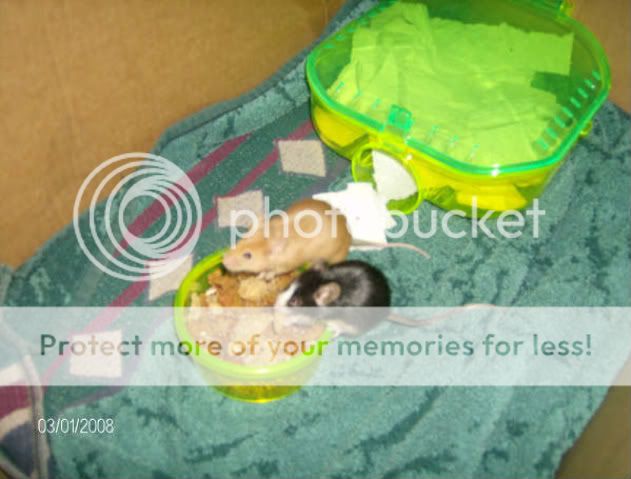 http://i256.photobucket.com/albums/h...7/HPIM3039.jpg My two adult female mice, Gertrude and Emily. http://i256.photobucket.com/albums/h...March08073.jpg Gerty says hello! http://i256.photobucket.com/albums/h...March08084.jpg Gerty and her babies when they were young. Okay enough of my mice... Here is a pic of me! http://i256.photobucket.com/albums/h...kandphilav.gif That is myself and my boyfriend. |