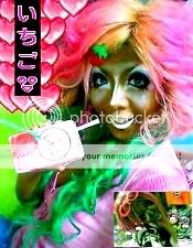 Before her old camera broke she has LOADS of pictures with people with crazy outfits, makeup, hair, stuff like that. She remembers getting her friends to help her once when she was in high school. They had a picture taken wtih a guy with a black and green mohawk. XD XD It was awesome.