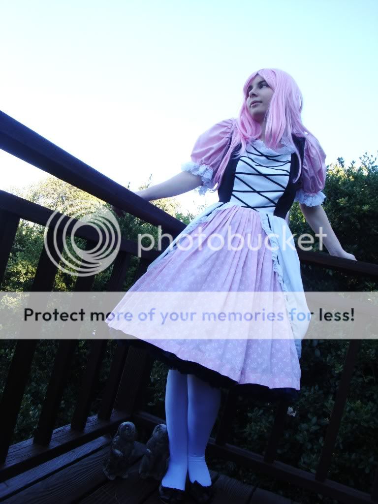 This little costume place was selling a tea shop maid dress for like... as cheap as possible, because it was asymmetrical and they wanted to get rid of it. xD So Megami bought it and threw me in it and put a pink wig on my head.