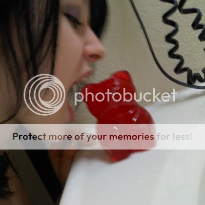 Oh! Here's me btw.. Me eating a giant gummy bear... aaand what I used to use for my signature on Gaia. XD |