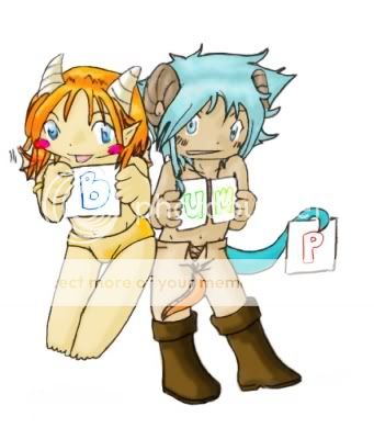 http://i157.photobucket.com/albums/t...hop/Adrien.jpg and http://i157.photobucket.com/albums/t...p/BUM.P400.jpg For my refs D: and tell people to choose Chibi sytle 1 (the top) or Chibi style 2 and both of them are 50g xD *flops over* I'm too tired to do a ref. The colour and stuff will probably change and yeahh *yawns* I dunno xD Chibis D: That's all I know at this time of night xD ahaha I should be on for a bit early in the day. I'll try to get a sample finished then xD I should probably run off D: I'll be back before I leave tomorrow for the BBQ to finish some stuff up hopefully xD *too tired to think* that's... a lot of "t"s xD *falls over* *CLING* D: NIGHT! <3 *chews on* |