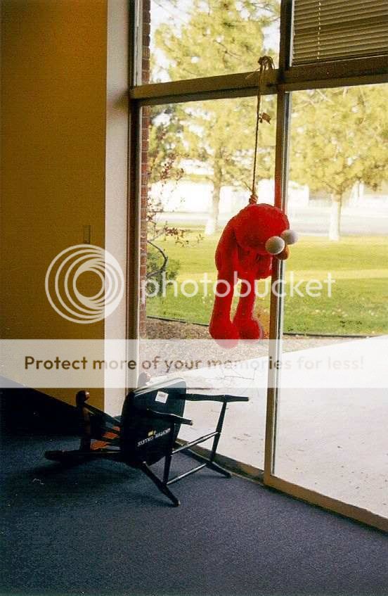 The only Elmo I know is an emo one. XD He's so said...he just couldn't take it anymore T_T......n_n; |