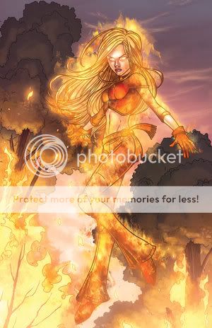 Power: Semi-Super Strength, Can control, create fire from thin air, prefers to shoot fire from her hands. She is able to fly, like all people of her plant, and because of her power can with stand high levels of heat. It also takes more for her to become cold, because she has a higher body temperature than most people. She has good fighting skills, where she uses her feet and hands to fight because there are moments where her powers will fail her.