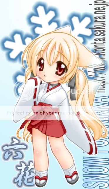 Bio: Fiyoko used to be a priness in the times where people wore Kimono's. There was a shop keeper, and because she didn't give him the time of day he turned her into a small doll. He put her long hair in two ponytails, and and had made her have ears and tail of a fox. Times passed, and she was kept in the back of his shop, and carried around. Apparently, he lived forever and she was forced to be his living doll. Not that he really payed much attention to her. Fiyoko was lonely... and now she sat behind the cash registers at the toy store he owned.... Not moving while people were there. And moving when no one was there.