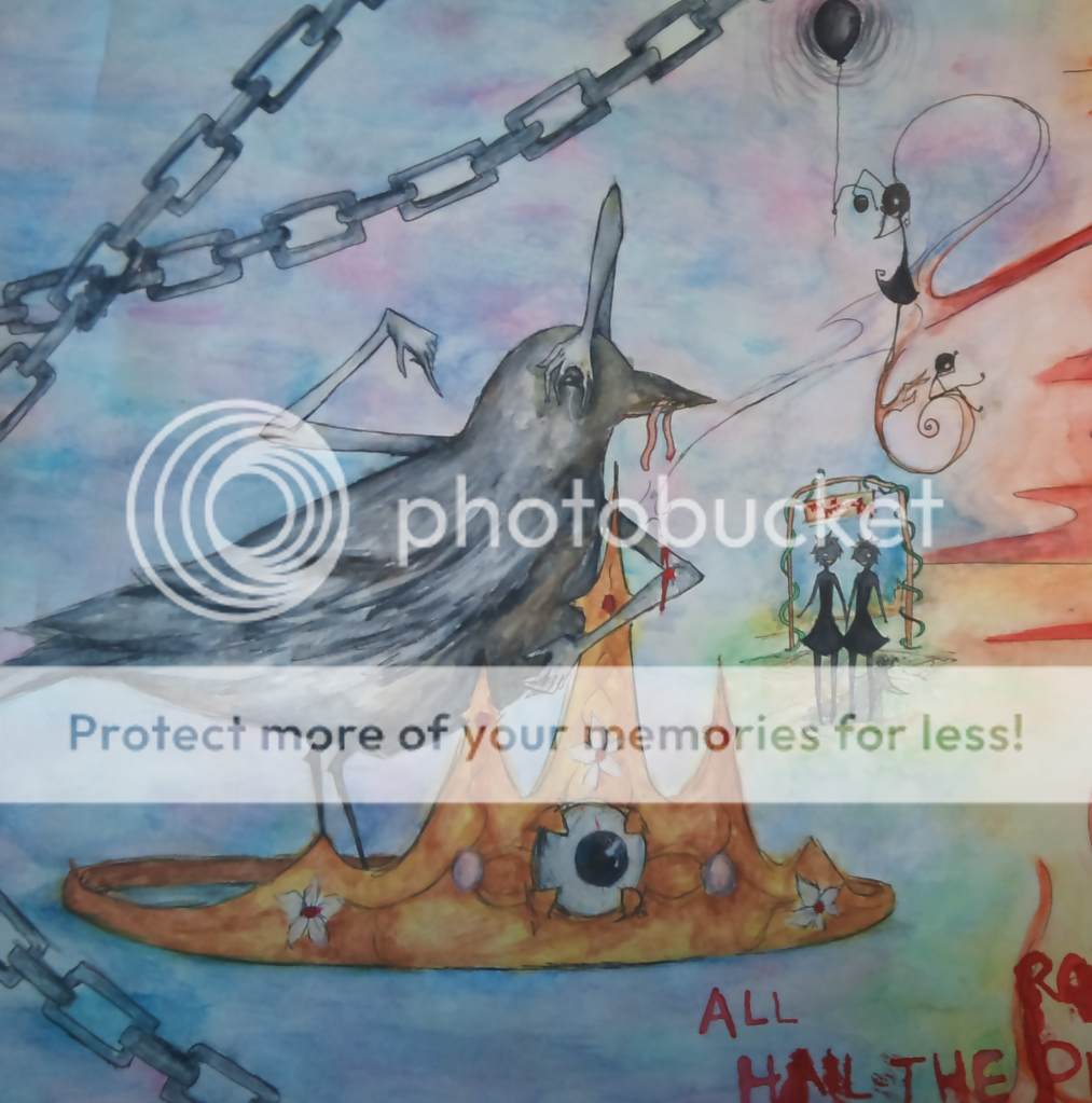 Third, the abstract piece: I am not trained in, nor do I really care for abstract art. However the crown and the arms have the shading and depth that the first is missing. I would suggest that you make the chains look more realistic and less two dimensional. Otherwise I don't have much else to say...