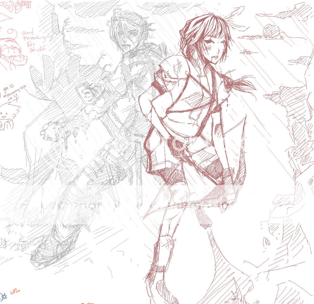 http://i124.photobucket.com/albums/p...milyofnoah.jpg I drew Rhode from D. Grayman http://i124.photobucket.com/albums/p39/Tittri/dgure.jpg I drew Kanda & Crowley from D. Grayman http://i124.photobucket.com/albums/p...tri/kaypoo.jpg Not a collab. It was supposed to be one, but something happened to the other person's picture :< http://i124.photobucket.com/albums/p39/Tittri/sail.jpg Again. Not a collab http://i124.photobucket.com/albums/p39/Tittri/melo.jpg Another one that was supposed to be a collab, but the other person had to leave http://i124.photobucket.com/albums/p...FFVIIharem.png Final Fantasy VII collab. I drew... Alot of characters XD Left -> Right Barrett, Rude, Cloud, Reno, and the humanization of Red XIII. |