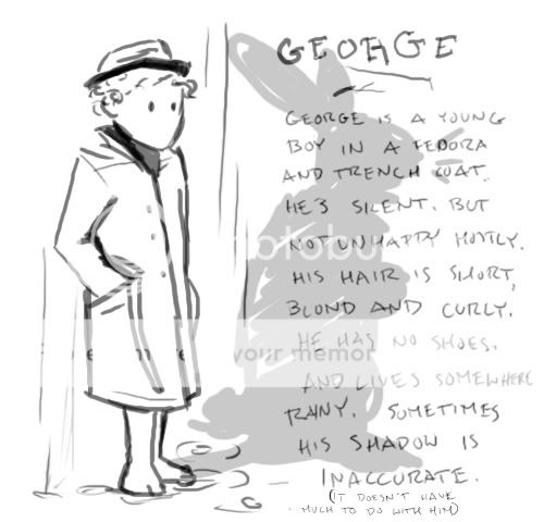 I'll post my OC shortly. Here's Cat's. Tis Ty, miss. http://i27.photobucket.com/albums/c1...ica/tycopy.jpg I love him. Mostly because his face is a cross between my favorite face of the moment and a crush I had at sixteen. <3 ^^ And my own OC http://i27.photobucket.com/albums/c1...ica/george.jpg |