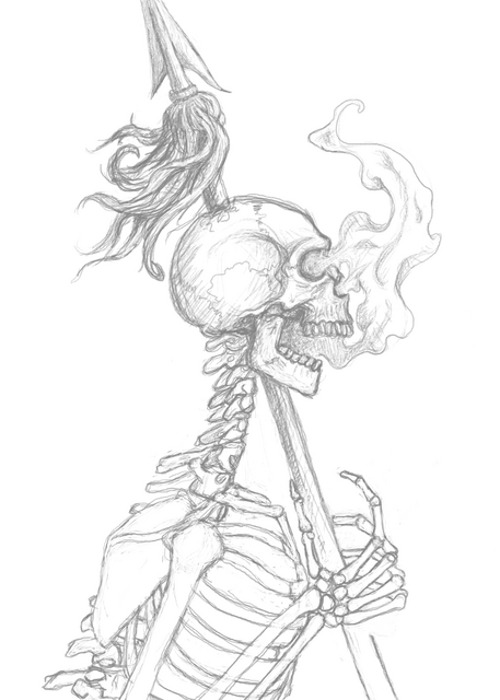 Nice, I like the way that you have the skeletal structure. And the spear through the head is a welcome touch ^_^