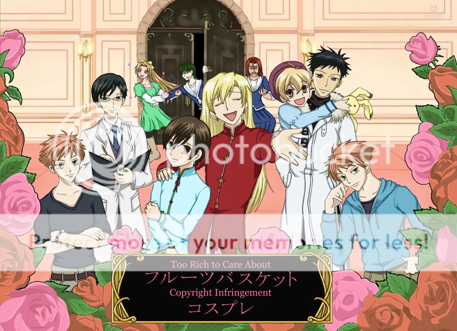 I love your fun picture time especially the 'too rich to care about copyright infrigement'. Honey really does remind me of Momiji! And Tamaki and Ayame! Though I would have so preferred Tamaki to be Shigure! And the twins as girls are full of love! I want my kids to look like that if I could :P Do fill in more posts with pictures. They are really nice to look at.