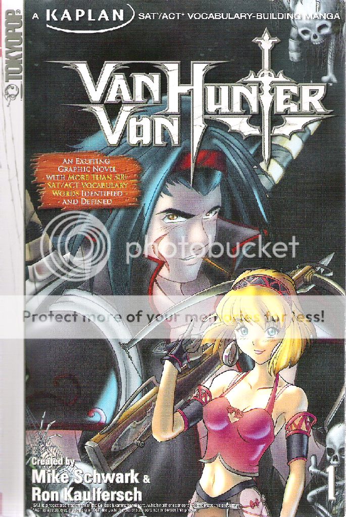 Making manga that also gives vocab that could help you on SAT and ACT! Yeah you think I'm crapping you, I'm not. My boyfriend(I'm a girl in real life), let me borrow one that I thought looked good to see how they are trying to be helpful on the tests. The only reason I bring it up on this sub forum is due to the publisher, Tokyopop. I kinda didn't believe it until I had my hands on the book and read it, it's actually not too bad. The other one my boyfriend has is a WoW one which I want to look at too since it looks like it has slightly better art than the one I read, Van Von Hunter or was is Von Van Hunter, how they made the title is a bit odd to me. Other than the art, which at times seems a bit out of place. However the story to me is pretty good, and as the book puts it for type of book, it's a comedy and I tend to have a good time with those. So what's your thoughts of what kind of partnership that Kaplan and Tokyopop. Is it good, bad, or okay(as in can go either way), and why so? To me it's okay so far, until I see more things out of this, I don't have much say about the partnership. However I think it's kinda an interesting idea to try to slip in words that might not be very well known to some people. Though for me, a English Diff student, quite a bit of the words used I already knew so not so much a help but a help in seeing how they were used in sentences. Heck there were a few that even I didn't really know much about. Though when I found the word nefarious, I just couldn't help but laugh, I knew what the word was, so I found a third thing that I found helpful, other than the how to pronounce but also for me, I have a hard time spelling, so I might know quite a bit of vocabulary but I can't spell to match my knowledge. So it was pretty cool to see some words I knew and finally see the spelling for them.