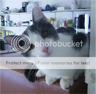 @Fuy: Quazi's super cute. He's a grey american shorthair mutt-kitty =D