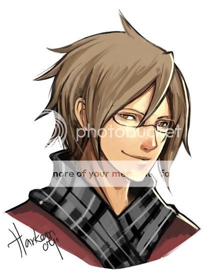 EDIT: I feel bad for asking, but do you mind if I make his hair a smidgen more tawny/green? [x] >__>; I know it's not as nice of a color, but that's what his hair is like. I totally love the shade you picked though and his little scarf thing and everything else. <3 @Jitsumi: If you knew what he was like, I'm not sure you'd want him. XD But I don't think he'd mind. |