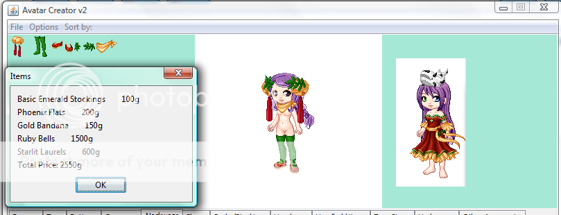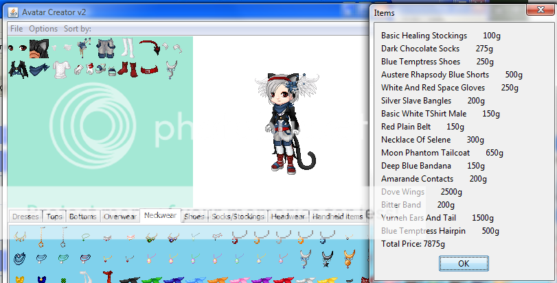 Aww. D: You could go for the basic grey items, which are fairly cheap. I think they're around 150g each? Stockings are 100g, if I'm not mistaken. ^^ |