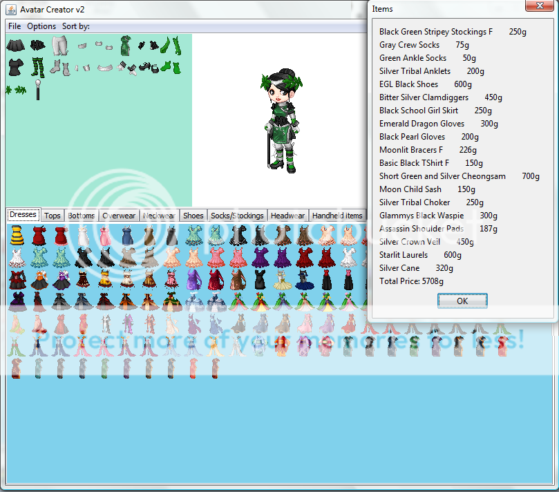 Gender: Female Colors: Green, black, and sliver Price range: Dont matter ^^ Anything else?: Brown hair please ( items you want included, items you already have so I can extend the price range by a bit, items you don't like, hair style/color, skin color, themes, preferences, etc. |