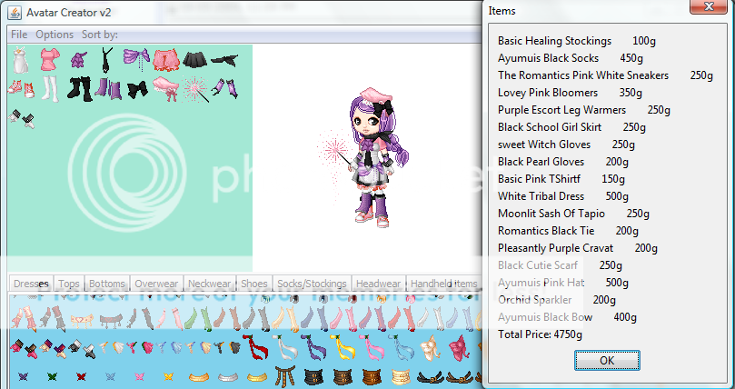 Colors: Purple, white, and gold or light pink, white and black. Price range: none Anything else?: Please make it either elegant or cute. Thank you. ^-^ |