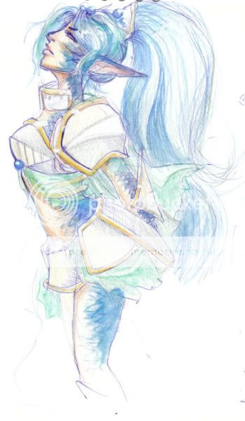 lol chi you didnt get anything wrong with her at all that juumps out, asnd i tend not to go looking for stuff because why spoil the pretty picture yes? *rolls* oooo sorta post-apocolyptic-spacey *bounces* sounds fascinating. all my stuff is nearly always high fantasy magic elves dragons that kinda stuff *snort* have yet to make a sci-fi char, just cant bring myself to do it since i read little or no sci-fi and wouldnt even know where to begin. though i DO love treasure planet (have you seen it? it rocks) and thats kinda sci-fi-y? *jawdrops* holy crap now thats detail on clothing. GOOD LUCK ON YOUR REMAINING FINALS! im doing good, having some fellow geeky friends coming over later today and we are all playing games over here to hang out.. should be interesting... WHY AM I ALWAYS THE ONLY GIRL? though i guess i'll take that as a complement that im suitably nerd enough for it all. lol |