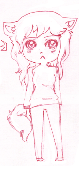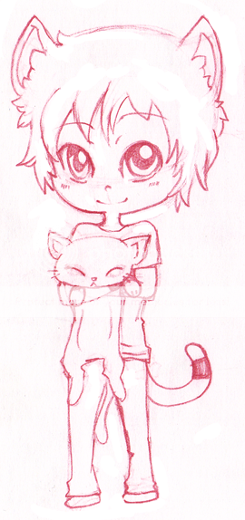 yea i had some distractions :D;; well we can just say his hair got cut off since he has a * ^ * look on his face while holding his tail~ XD i did have a better eraser but it went MIA and then i had another but my brother claimed its his and took it, and when i did want to use it...he lost it ): @mew nah its fine :) its been long periods whenever i did draw your avatar you really like the outfit! =) |
