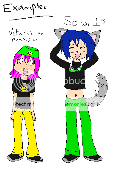Type: MS Paint full body Detail: My avi, the rest is up to you. :3 Price/Bribe: 20g Really cute. (: |