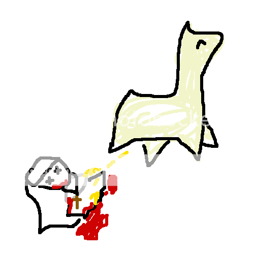 Teehee... All of this drawing is making a story! I say the llama pees on the nun's remains next! :illgetu: |