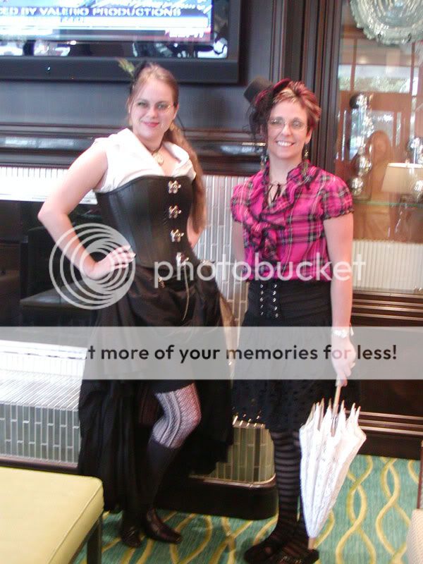 http://i4.photobucket.com/albums/y12...nsteampunk.jpg ^ My steampunk outfit for conventions. xD (I'd be the girl on the left, of course. The girl on the right is my sister-in-law. xD) |