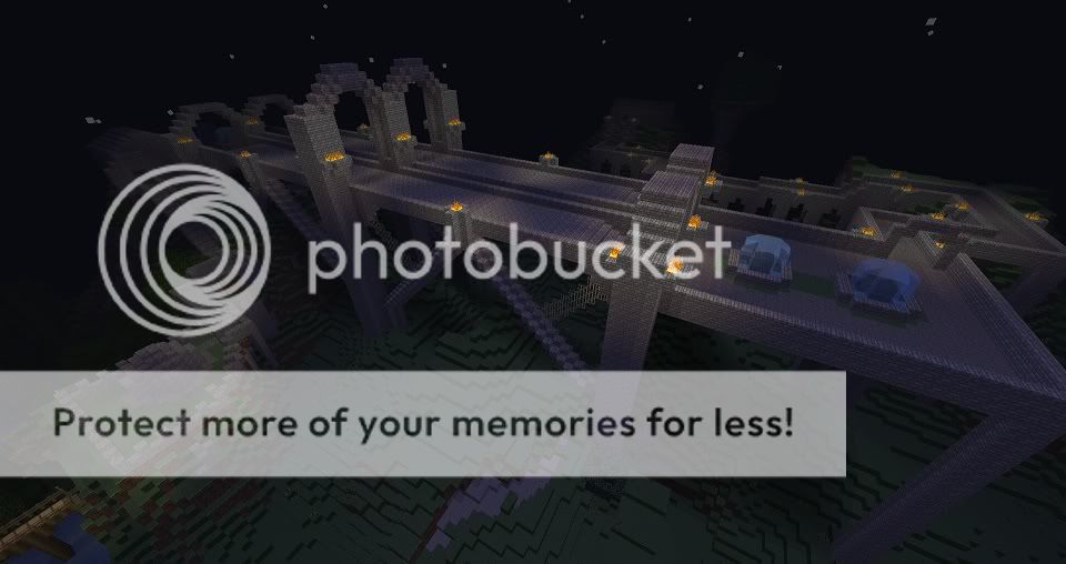 This one is right at the spawn point. The spawn is on the edge of a jungle biome, so I built sort of a tree house thing around it. http://i168.photobucket.com/albums/u...01/arkana1.jpg This one is of the huge bridge I made as part of the path to make it more interesting. http://i168.photobucket.com/albums/u...01/arkana2.jpg This one is the first few buildings of the city, plus the city entrance. http://i168.photobucket.com/albums/u...01/arkana3.jpg Here's the big town fountain thingy. http://i168.photobucket.com/albums/u...01/arkana4.jpg The bridge connecting to the keep. http://i168.photobucket.com/albums/u...01/arkana5.jpg Standing at the entrance to the keep to get a god view of how big it is inside. It's partially inspired by Dragonsreach. http://i168.photobucket.com/albums/u...01/arkana6.jpg The unfinished king's bedroom. http://i168.photobucket.com/albums/u...01/arkana7.jpg Took a break from building the previous city and started building another one. Here it is from the outside. http://i168.photobucket.com/albums/u...01/arkana8.jpg Looking down from one of the gate towers at the entrance. http://i168.photobucket.com/albums/u...01/arkana9.jpg And as you can see, it's not finished yet. This is only about 1/5th of what the entire thing will be. 3 other sections plus a castle in the middle. http://i168.photobucket.com/albums/u...1/arkana10.jpg |
