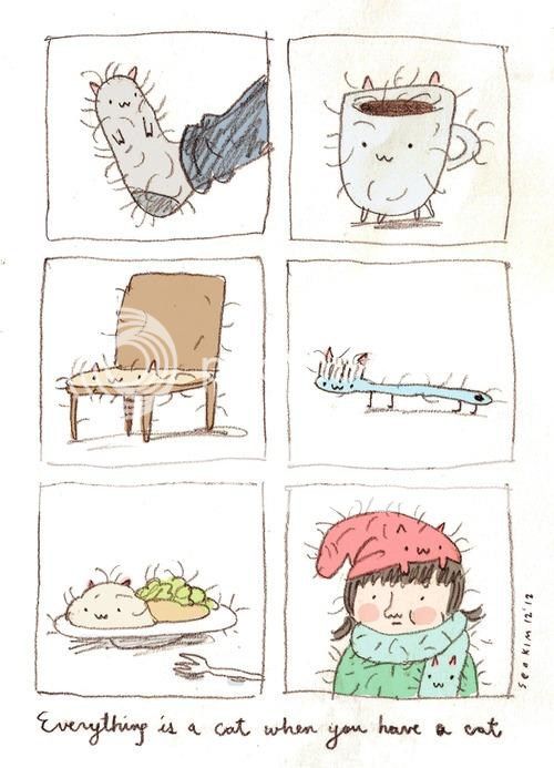 I'm STILL finding cat hair on my stuff... from ALL the cats I know ^^"