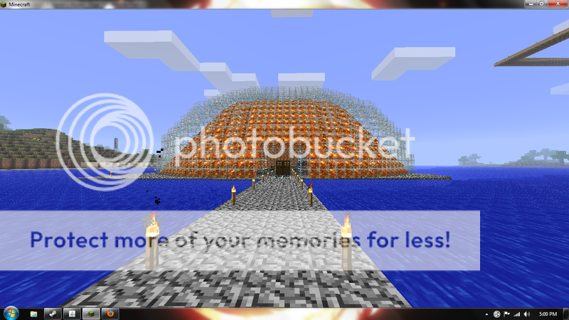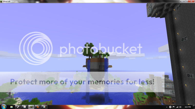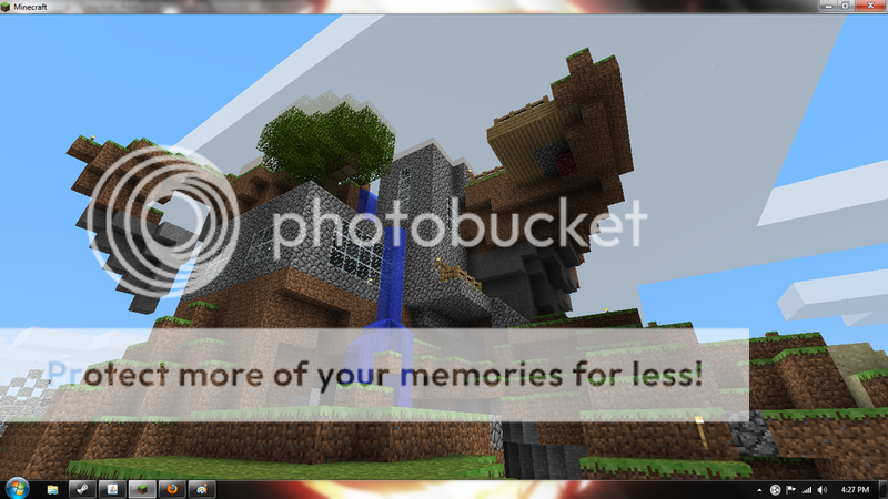 This is a house I've built into the side of a cliff. The roof has a "bbq pit" and a pool with a spring :) Here's another fort. The builder's name is Craig. xD Floating Island! It's artificial though. We have a natural one but it's being renovated right now so it looks kindof ugly. We have mine tracks going up to the top, but we're slowly converting to "subways" instead of sky lines, to make the area look nicer. Instead, we're using waterfalls to climb to the top (even though it's kindof slow). That's all I have at the moment. I'm still taking more as I go. |