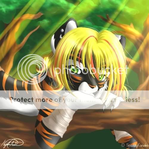 "Gesie Kokoro." Gesie said softly finally wiping the tears away and looking up at him. Most of the girls were scared because of all the stories that they had heard about Dusten and were scared he would kill them. If she got to know him then she might not be scared of him though until she was absolutely sure that he wouldn't hurt or kill her then she would be scared... really it was only natural for her to fear him... he was a freaking tiger that stood on his hind legs and could tower over even the tallest male in the village, who wouldn't be scared?!