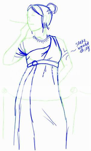 ---------- Finished the skin. Now to decide on whether or not to work on the face or the dress. The dress will take longest since it's biggest and gets a bunch of sparkly details, but I haven't decided how yet I'm going to do the face (realistic or more stylized). Blehhhh. I guess I should just start on the dress. Jewelry and hair will probably be very last, and then I'll move on to background (EEK) and the velvet rope foreground. |