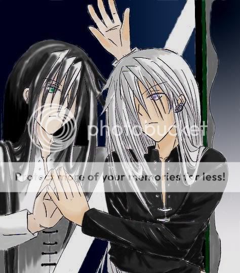 Appearance: Jay and Flinn Scion ((Jay is the one with silver hair, the good one, and Flinn is the one with dark hair, the bad one))