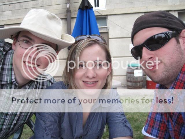 This is me(on the left), one of the girls I work with, and a guy that used to work with us. We were at the Calgary Stampede, in a beer garden.