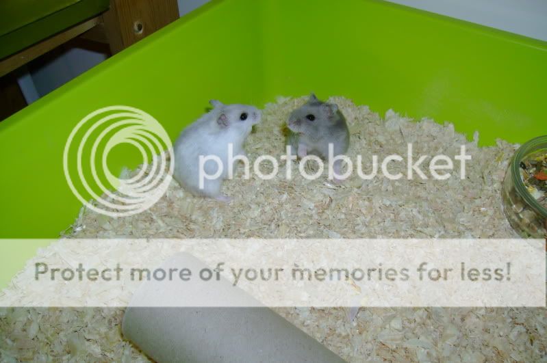 http://i5.photobucket.com/albums/y17...ndae/001-6.jpg I've had to seperate them because the grey one attacks the white one whenever he feels like it now, but they're just so cute and tiny =3 |