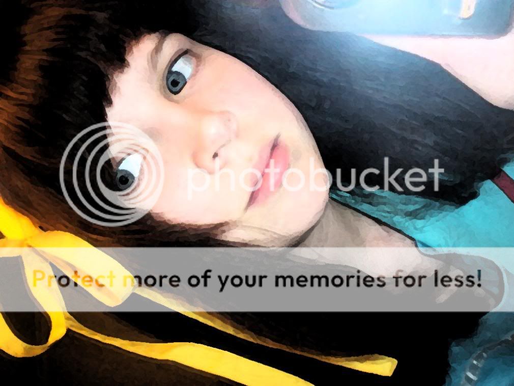 http://i253.photobucket.com/albums/h...nnie/bupbe.jpg u _ u;; The only picture I have that I even kinda like. I'm the queen of upside down pictures, regular like I look disfigured but upside down I look normal. Yay for Tarzan bed hair and glitter! :'B |