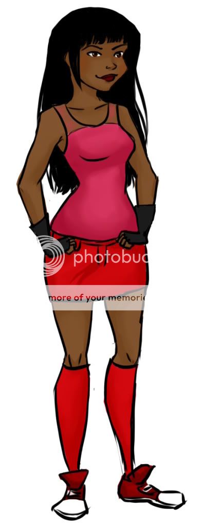 My OC (Lilurai) I don't have a good reference pic yet, -_-;; sorry Skin Color like my avatar short straight bangs that reaches a little above her eyebrow She also has 2 longer bangs at the sides of her face (kinda like my avatar's) Long jet-black hair that reaches the middle of her back A ruby red (kind of pink-ish red) tank top that has VERY short see through sleeves and shows her belly button A short red skirt A belt that droops to her right hip and fades from a silver to a black from her right to her left Knee high socks that start with black at the top and fade out into a red as you get closer to her shoes Red tennis shoes Her eyes are asian like, and a little darker than a medium brown She wears one short black fingerless glove on her right hand ...-_-;; |