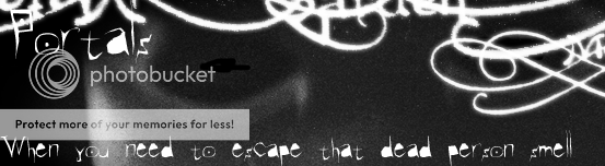 http://i212.photobucket.com/albums/c...Arm/Banner.png In the land of the dead-- Heck boy, ain't it grand? I'm the overlord of the underworld, Cause I hold Horror's Hand! In the land of the dead, I'm darkside royalty. I'm far renowned in the underground, And you can't take that from me! Welcome to the Land of the Dead, my first hangout thread! I tried to put some effort into this, so please enjoy your stay! *Ahem* Here we host all types. From the dead, to the demons, to the... if we must, the humans. Feel free to discuss anything you'd like! If we had to have a subject, though... Spooky stuff. Boy, do all of us here love spooky stuff. Horror movies, odd music, horror games (videogames in general, really), ghosts, and things like spiders and peculiar smells. But again feel free to come at us with anything you'd like. I'll be your host, Dollie. Follow me, and don't stray too far off the path... ---- INDEX 1.: Entrance (You are here) 2.: The Old Gates (Rules and News) 3.: Where Am I? (Thread Description) 4.: Humans Go Here (Human/Living Residents) 5.: Dead People Go Here (Dead Residents) 6.: Dollie's Notebook and the Death Note (Black and White Lists) 7.: Portals (Links) 8.: That's Pretty Funny (Worthy Quotes) 9.: Misc. (Credits and stuff) |