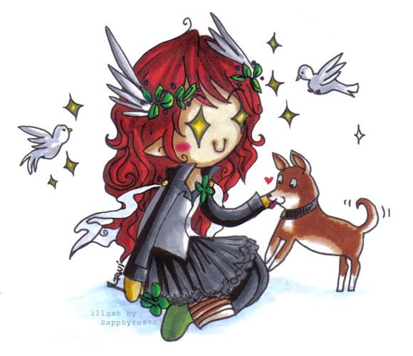 wow sapphyre-san! such great chibis and an interesting marker style you gots! well done *claps* I especially like how you do simple backgrounds and that one pic with the flame wings >w<